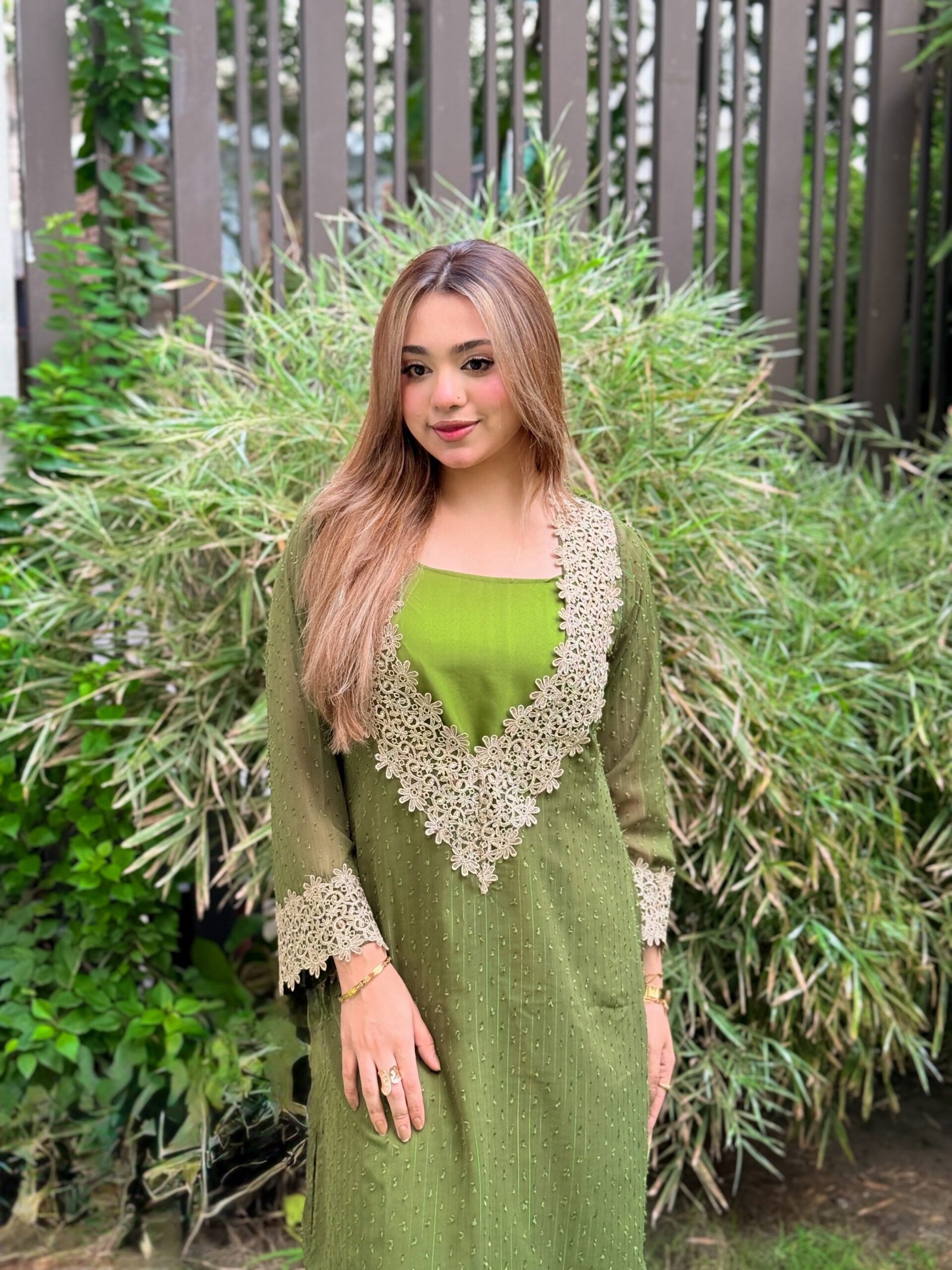Dress fabrics: Swiss Dot Georgette with Luxury Thread Lace Work